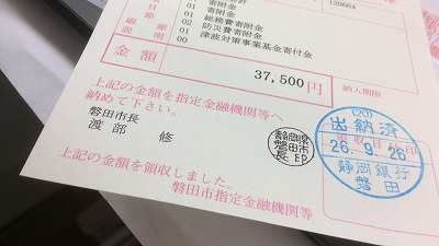その受講料37500円を磐田市の津波対策事業の寄付金として
